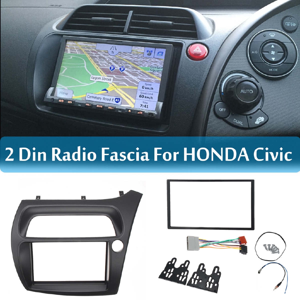 Details About Double Din Radio Fascia For Honda Civic Dvd Frame Iso Wiring Dash Mount Trim Kit