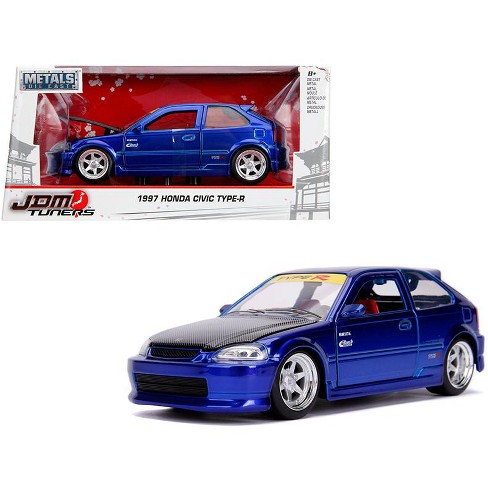 1997 Honda Civic Type R Candy Blue With Carbon Hood Jdm Tuners 1 24 Diecast Model Car By Jada