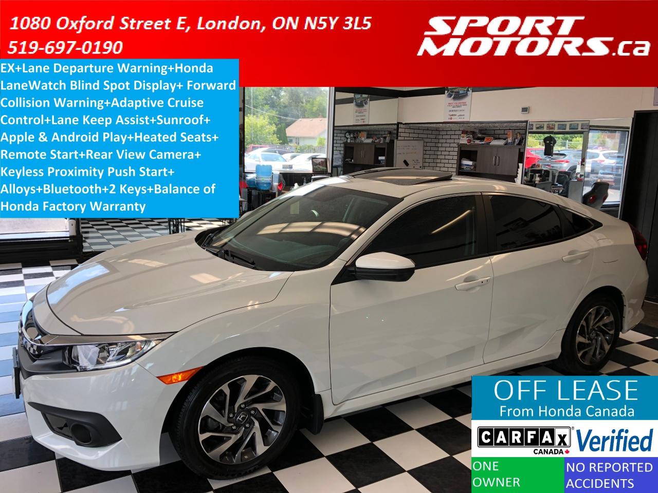 Pre Owned 2016 Honda Civic Sedan Ex Accident Free History Low Kms Sunroof Lane Watch Blind Spot Monitor Econ Mode Assist Front Wheel Drive Sedan