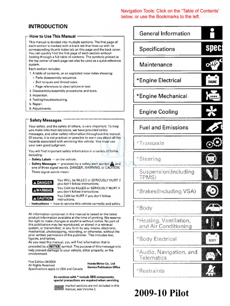 2009 2010 Honda Pilot Service Manual